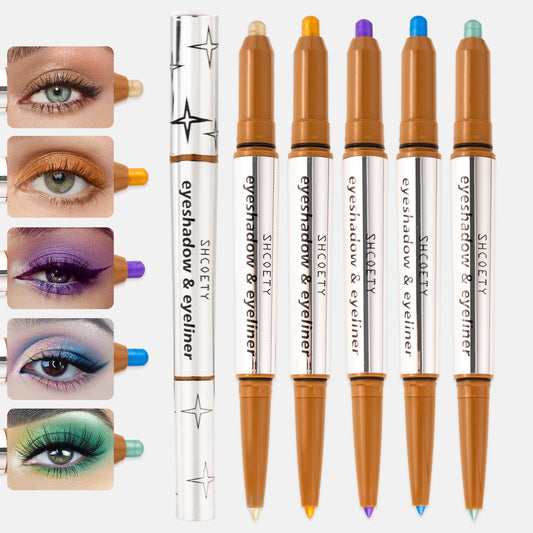 SHCOETY 5 FARBEN Lidschatten + Eyeliner mit zwei Enden, Creme-Lidschatten und sanft gleitender Eyeliner – wasserfest und knitterfrei, Farb-Geschenkset